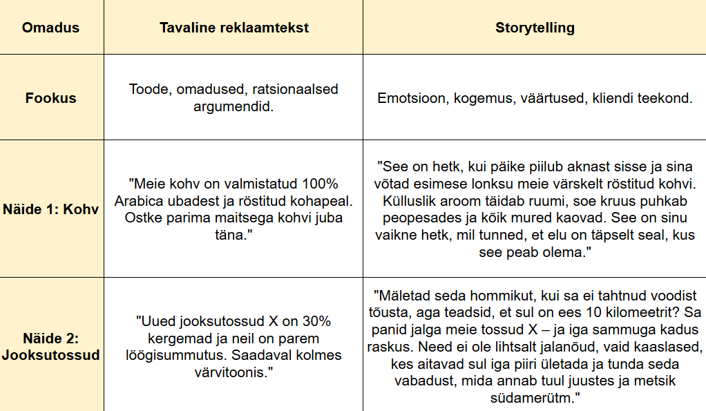 Storytellingus näidatakse konflikti realistlikult ja pakutakse toode/teenus lahendusena, mitte lihtsalt omadusena.